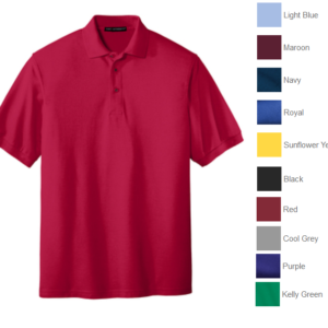Light Blue, Maroon, Navy Blue, Royal Blue, Sunflower Yellow, Black, Red, Cool Grey, Purple, Kelly Green